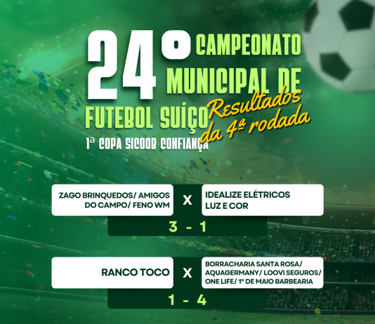 O 24º Campeonato Municipal de Futebol Suíço – 1ª Copa Sicoob Confiança 2026 teve sequência na última sexta-feira (20), com a realização da quarta...