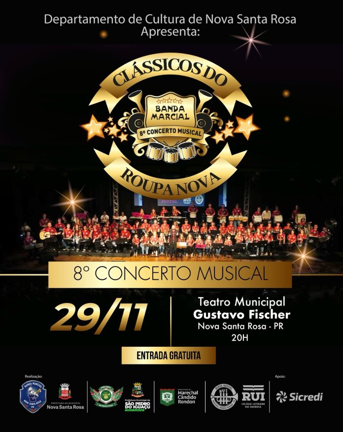 O Teatro Municipal Gustavo Fischer sediará neste sábado (29), o 8º Concerto Musical da Banda Marcial, que neste ano apresenta o tema “Clássicos do Roupa Nova”. O evento será realizado a partir das 20h, trazendo ao público uma seleção de grandes sucessos que marcaram gerações e celebram os 45 anos da consagrada banda brasileira.