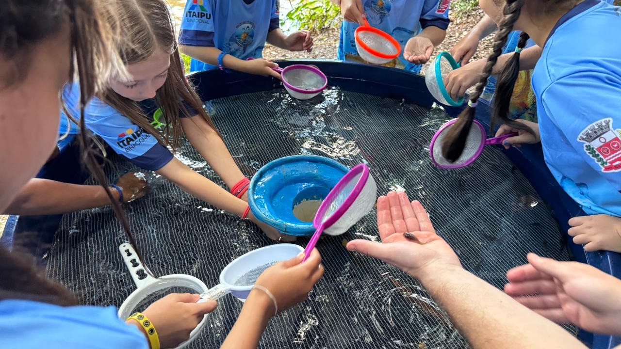 Ao longo da programação, as crianças puderam conhecer de perto práticas de preservação, entender a importância dos recursos hídricos e acompanhar a soltura de aproximadamente 17.500 alevinos e juvenis de peixes nativos no Rio Guaçu, na divisa entre Nova Santa Rosa e Quatro Pontes.