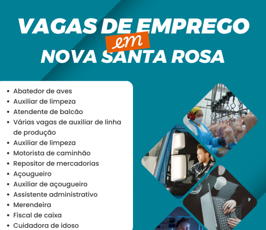 Procurando emprego? A Prefeitura de Nova Santa Rosa, por meio da Agência do Trabalhador, informa que há diversas vagas de emprego abertas no município,...