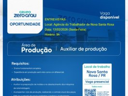 A Prefeitura de Nova Santa Rosa, por meio da Agência do Trabalhador, inicia o ano reforçando as oportunidades para quem busca o primeiro emprego...
