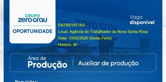 A Agência do Trabalhador de Nova Santa Rosa informa que o Grupo Zero Grau estará realizando entrevistas para vagas de Auxiliar de Produção, nesta...