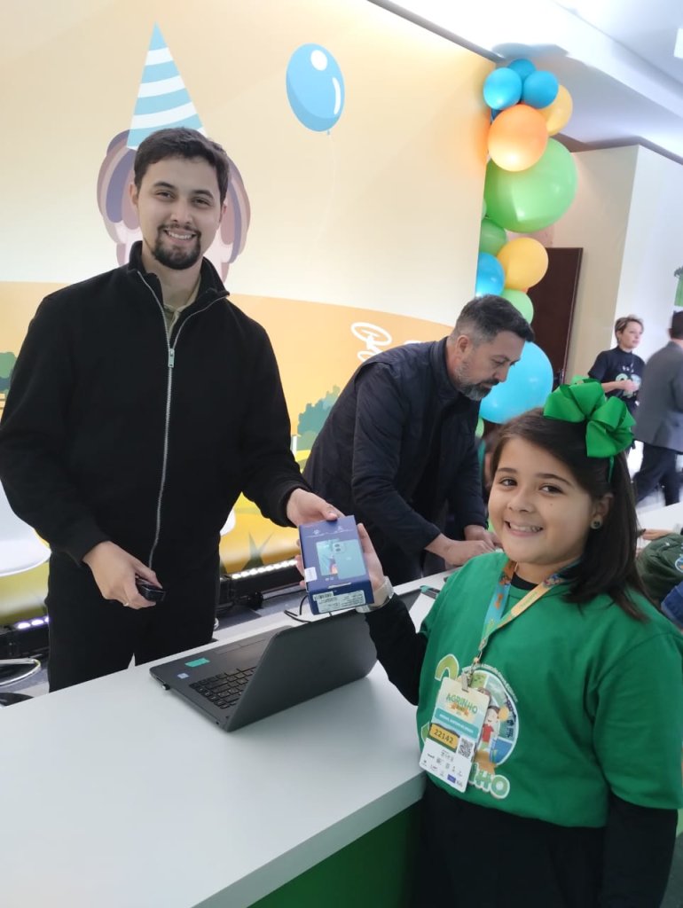 • Gabriela Vitória Sasse, aluna do 2º ano, acompanhada pela professora Karina Luiza Schweig e pela mãe Silvana G. Sasse;
