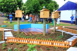 O CMEI Asilda Röpke e o Projeto Viver de Nova Santa Rosa inauguraram, na tarde de terça-feira (25), o Jardim de Água e Mel, uma iniciativa desenvolvida em parceria com a Sanepar – Companhia de Saneamento do Paraná. Os atos inaugurais reuniram autoridades municipais, representantes da Sanepar e integrantes da comunidade escolar.
