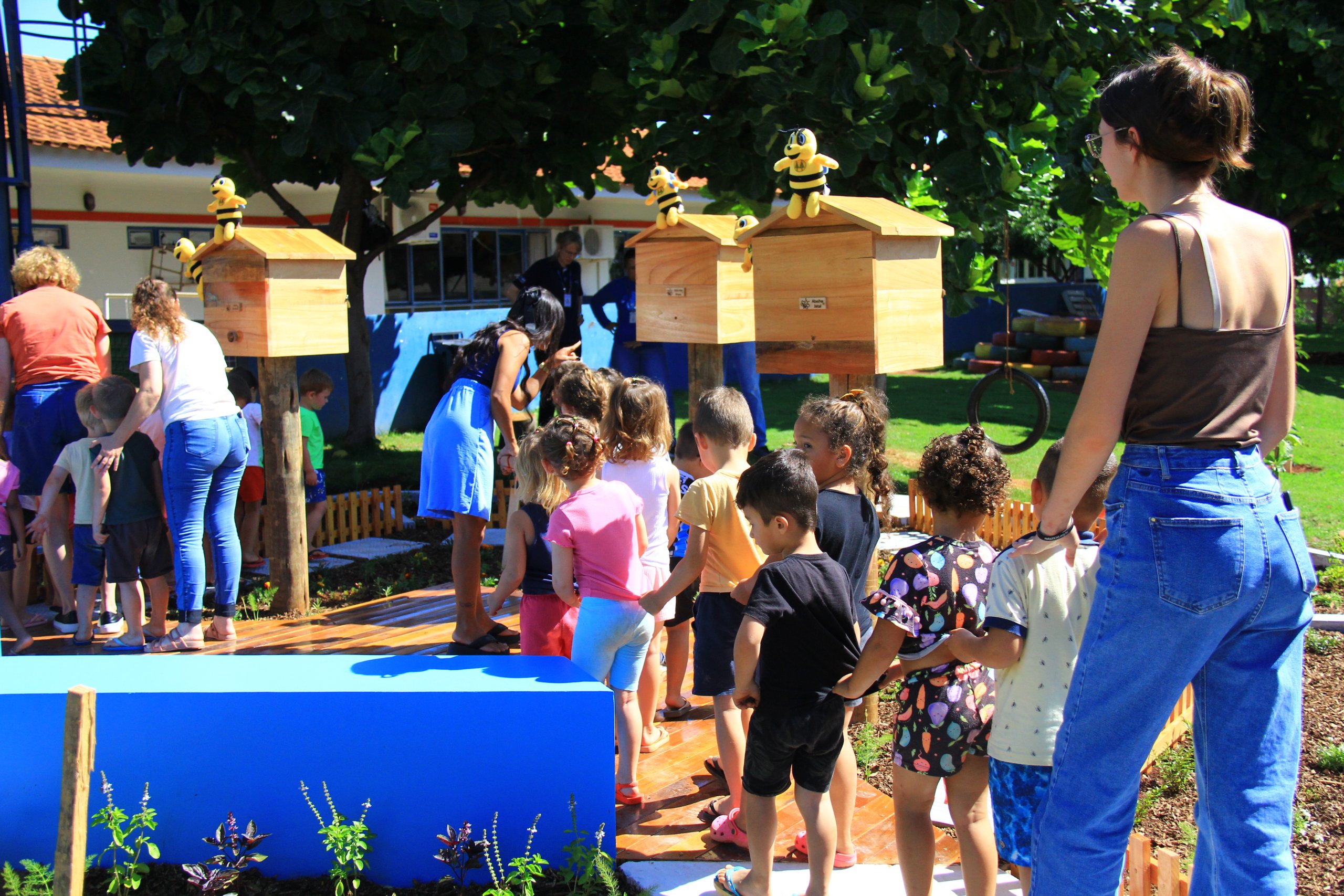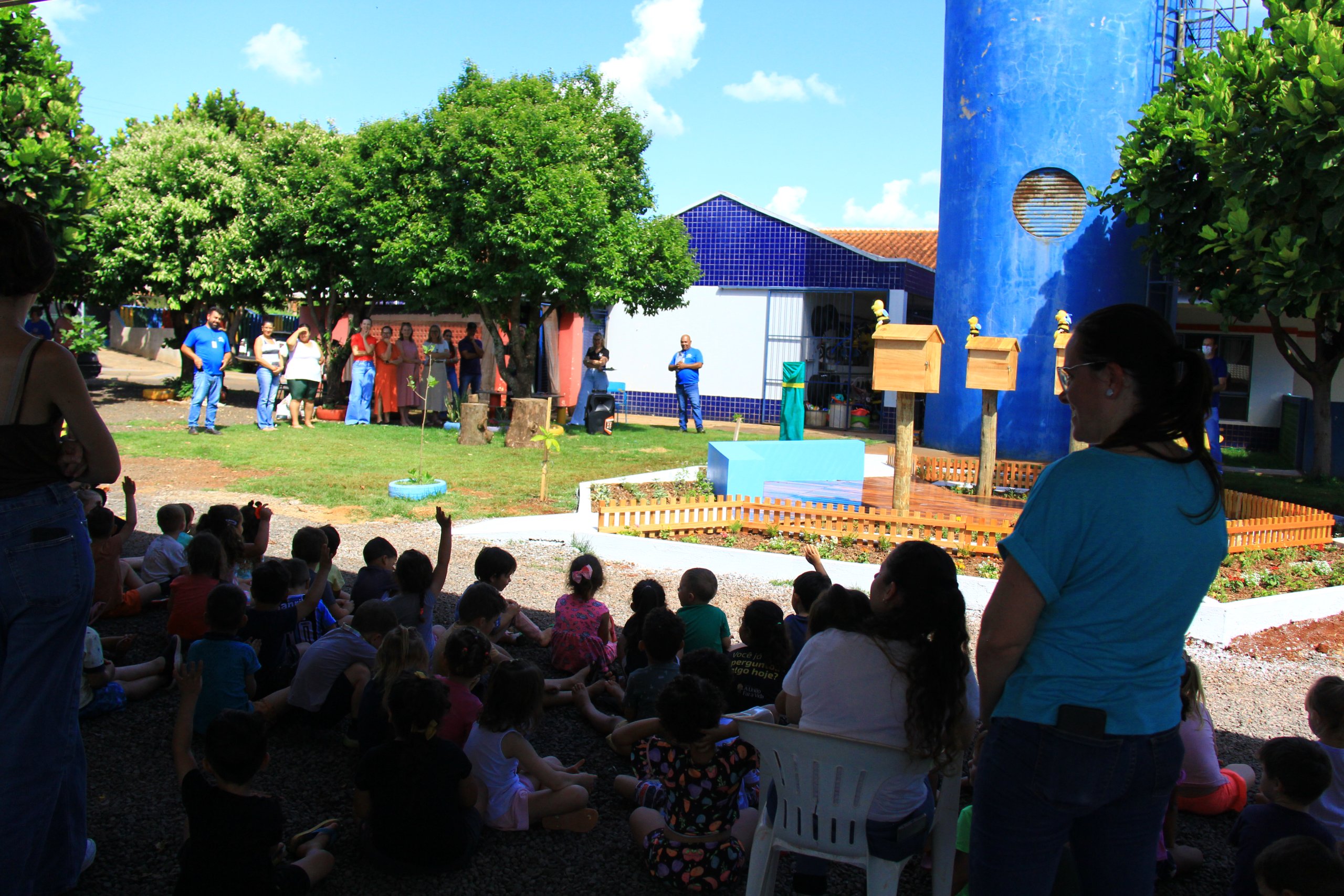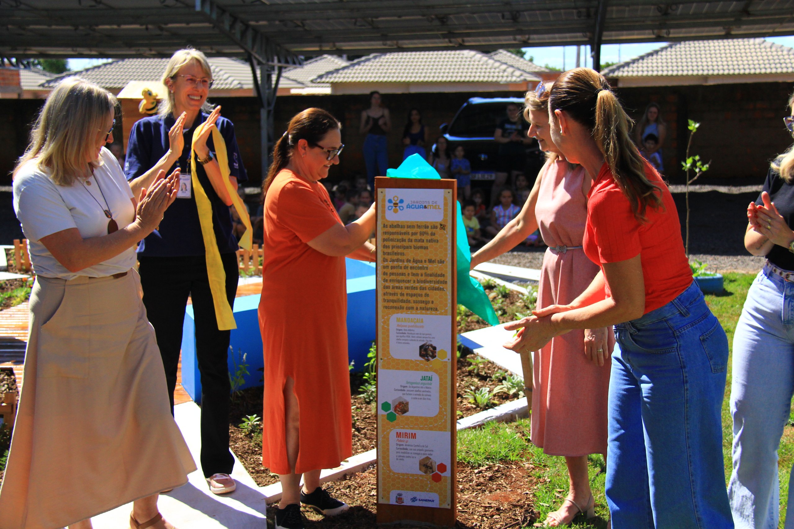 O CMEI Asilda Röpke e o Projeto Viver de Nova Santa Rosa inauguraram, na tarde de terça-feira (25), o Jardim de Água e Mel, uma iniciativa desenvolvida em parceria com a Sanepar – Companhia de Saneamento do Paraná. Os atos inaugurais reuniram autoridades municipais, representantes da Sanepar e integrantes da comunidade escolar.