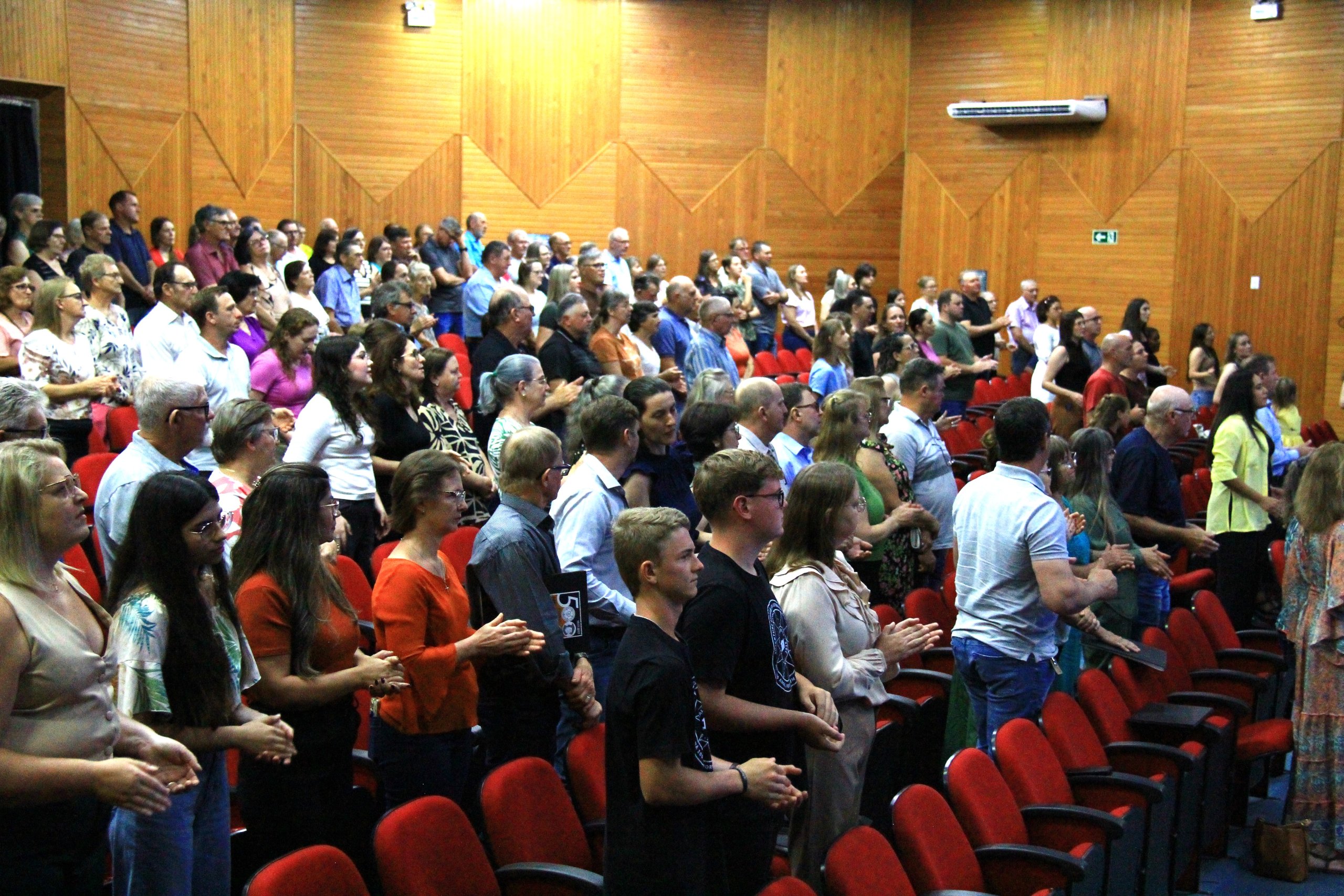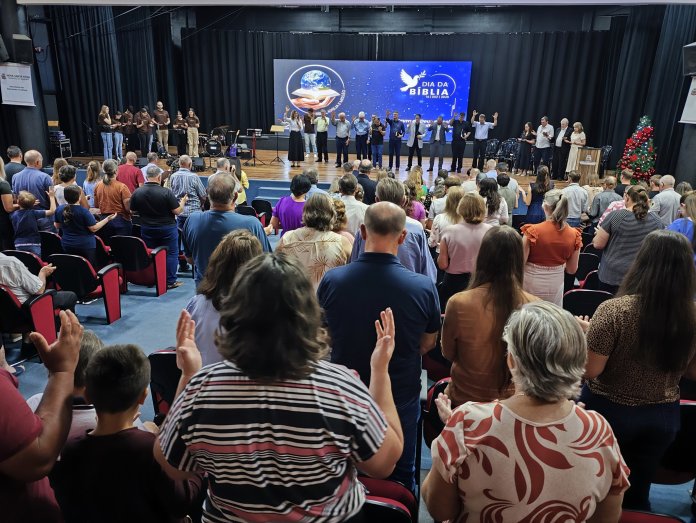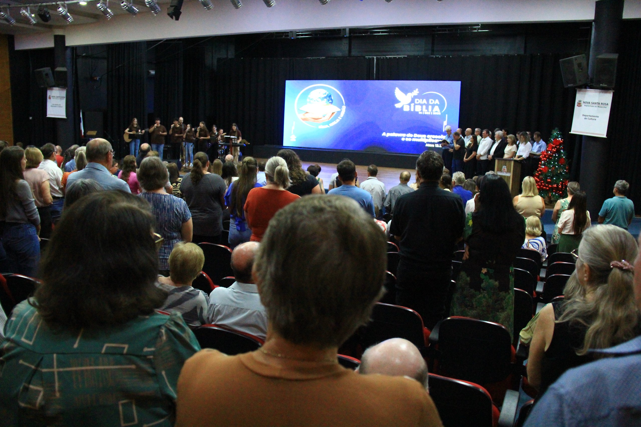 A comunidade cristã de Nova Santa Rosa se reuniu na noite deste domingo (07) para a celebração do Culto do Dia da Bíblia, realizado no Teatro Municipal Gustavo Fischer. O evento, que integra a programação do Natal da Família 2025, destacou a centralidade da Palavra de Deus como fonte de fé, vida e orientação, reunindo diversas denominações em um momento de comunhão e louvor.