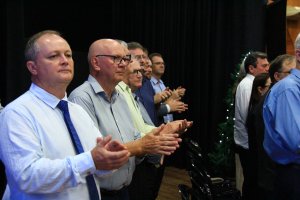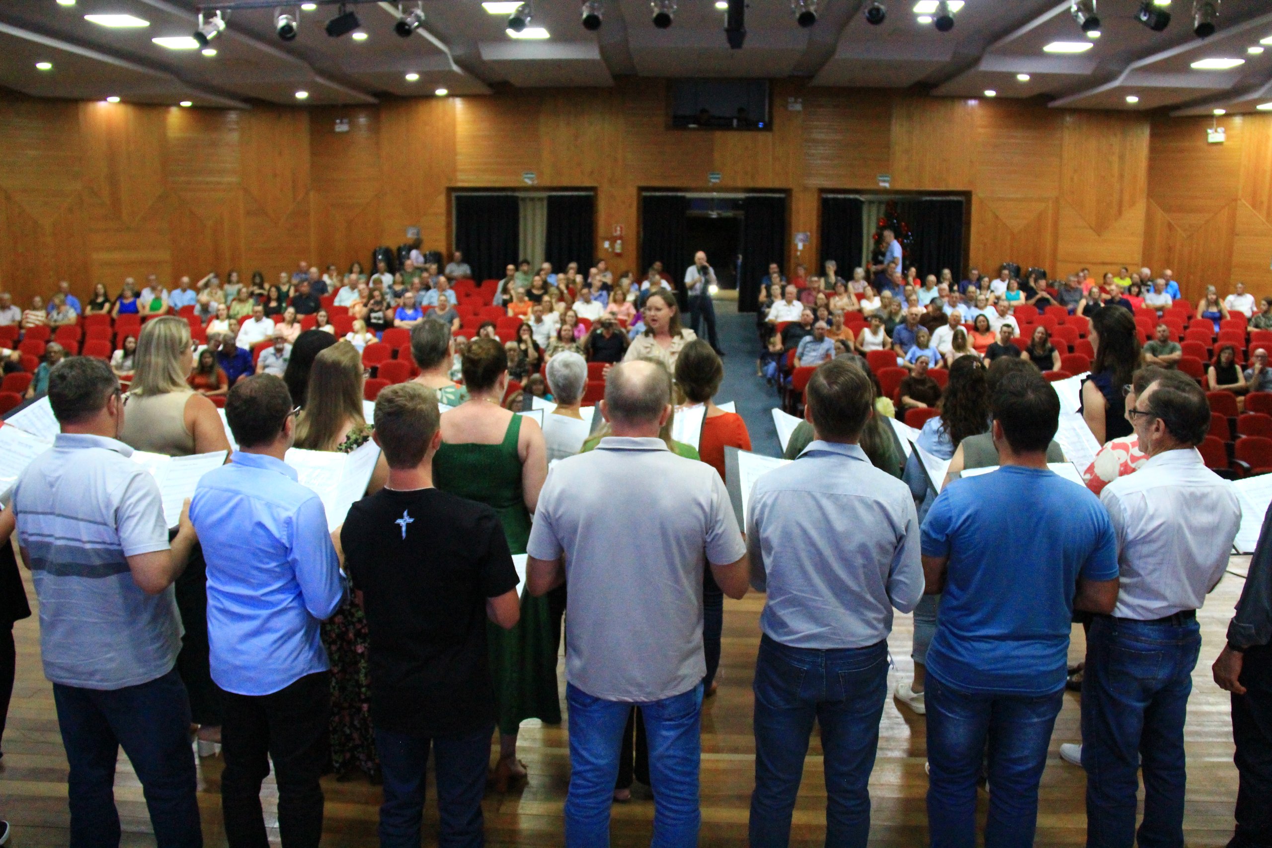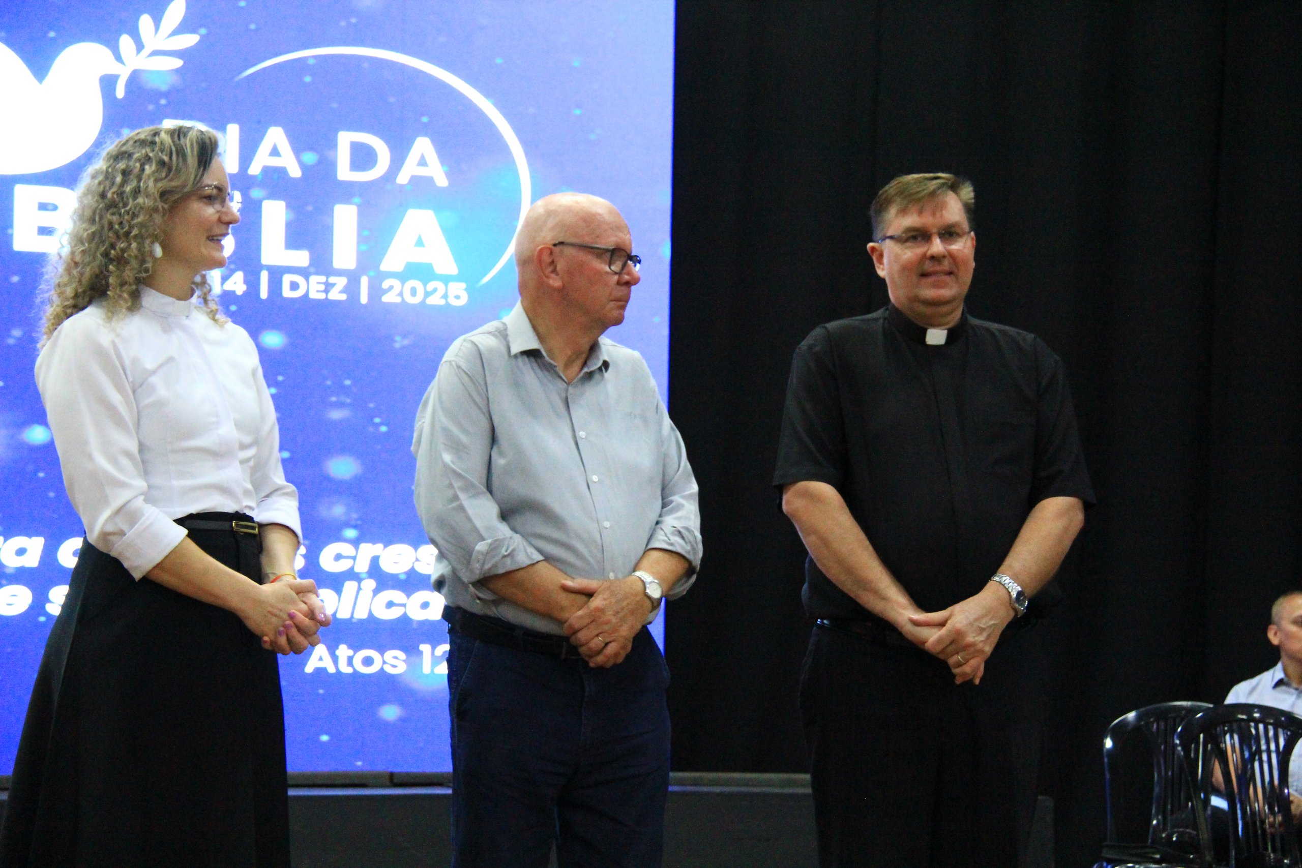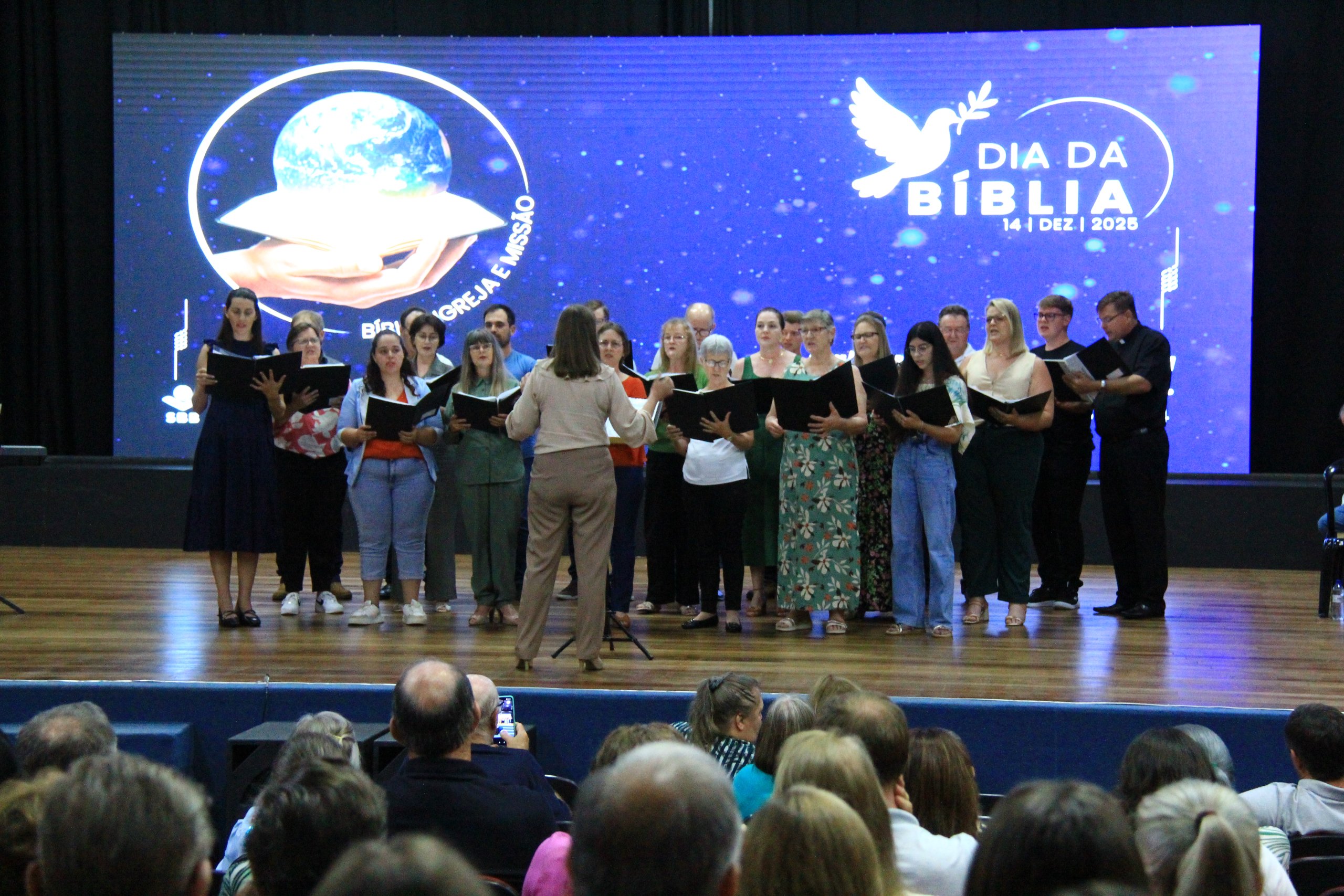 A comunidade cristã de Nova Santa Rosa se reuniu na noite deste domingo (07) para a celebração do Culto do Dia da Bíblia, realizado no Teatro Municipal Gustavo Fischer. O evento, que integra a programação do Natal da Família 2025, destacou a centralidade da Palavra de Deus como fonte de fé, vida e orientação, reunindo diversas denominações em um momento de comunhão e louvor.