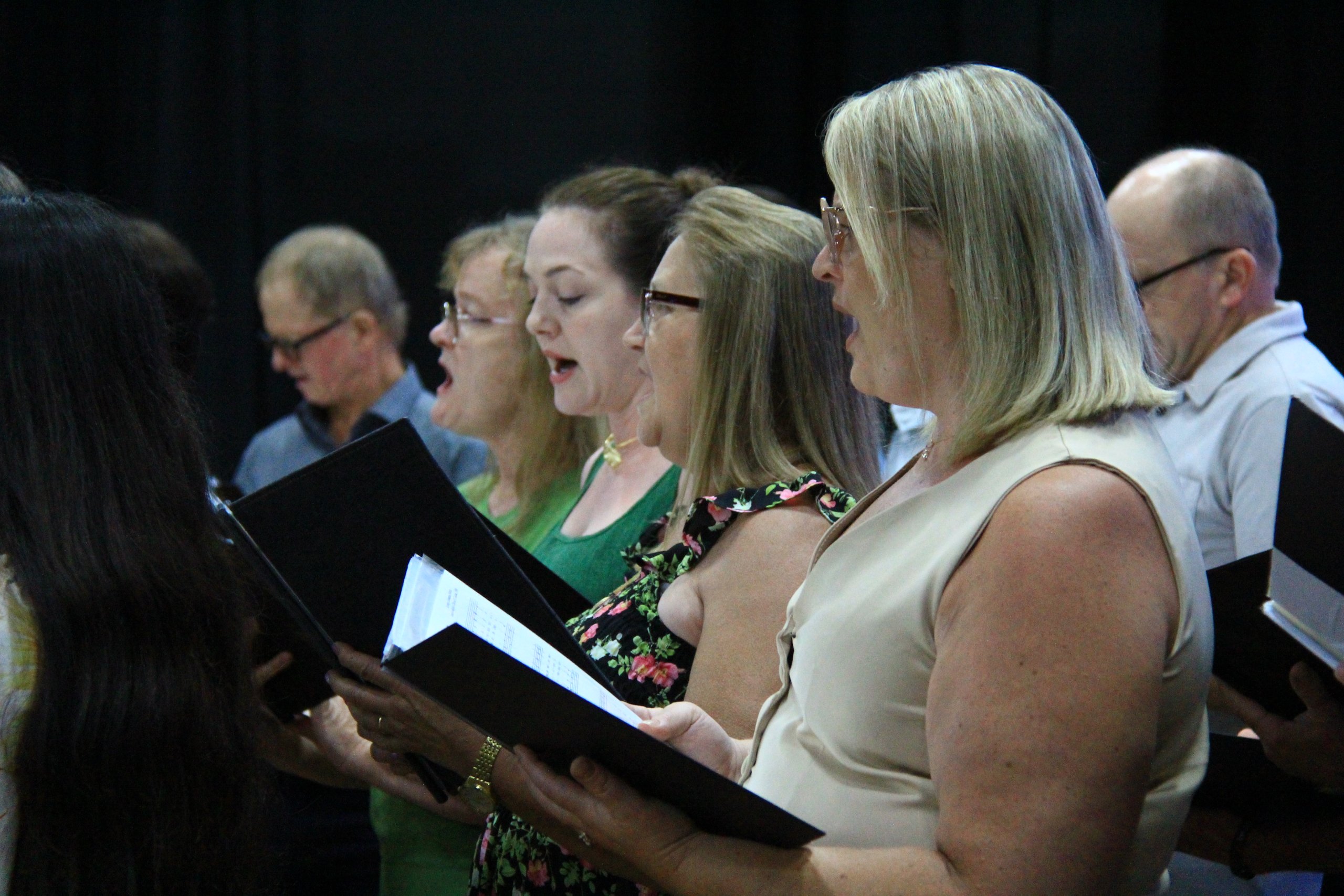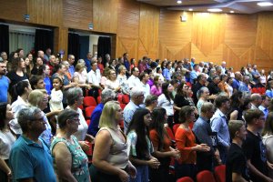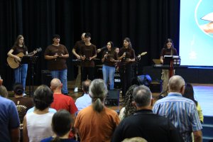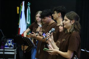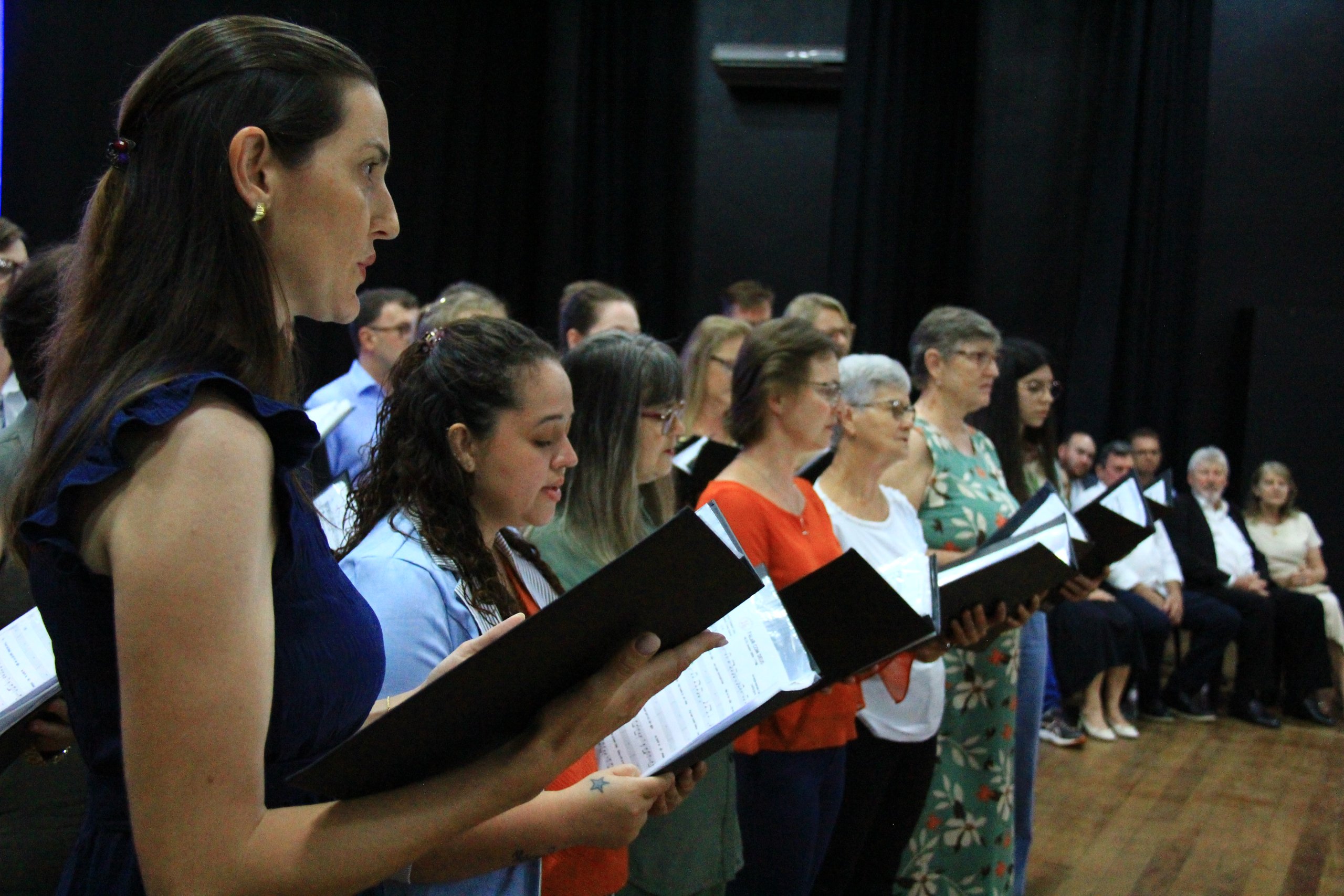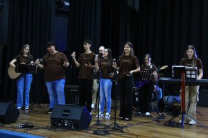 O momento de louvor foi conduzido pelo grupo de adolescentes da Primeira Igreja Batista, que também acompanhou a participação especial do Coral da Igreja Luterana São Mateus.