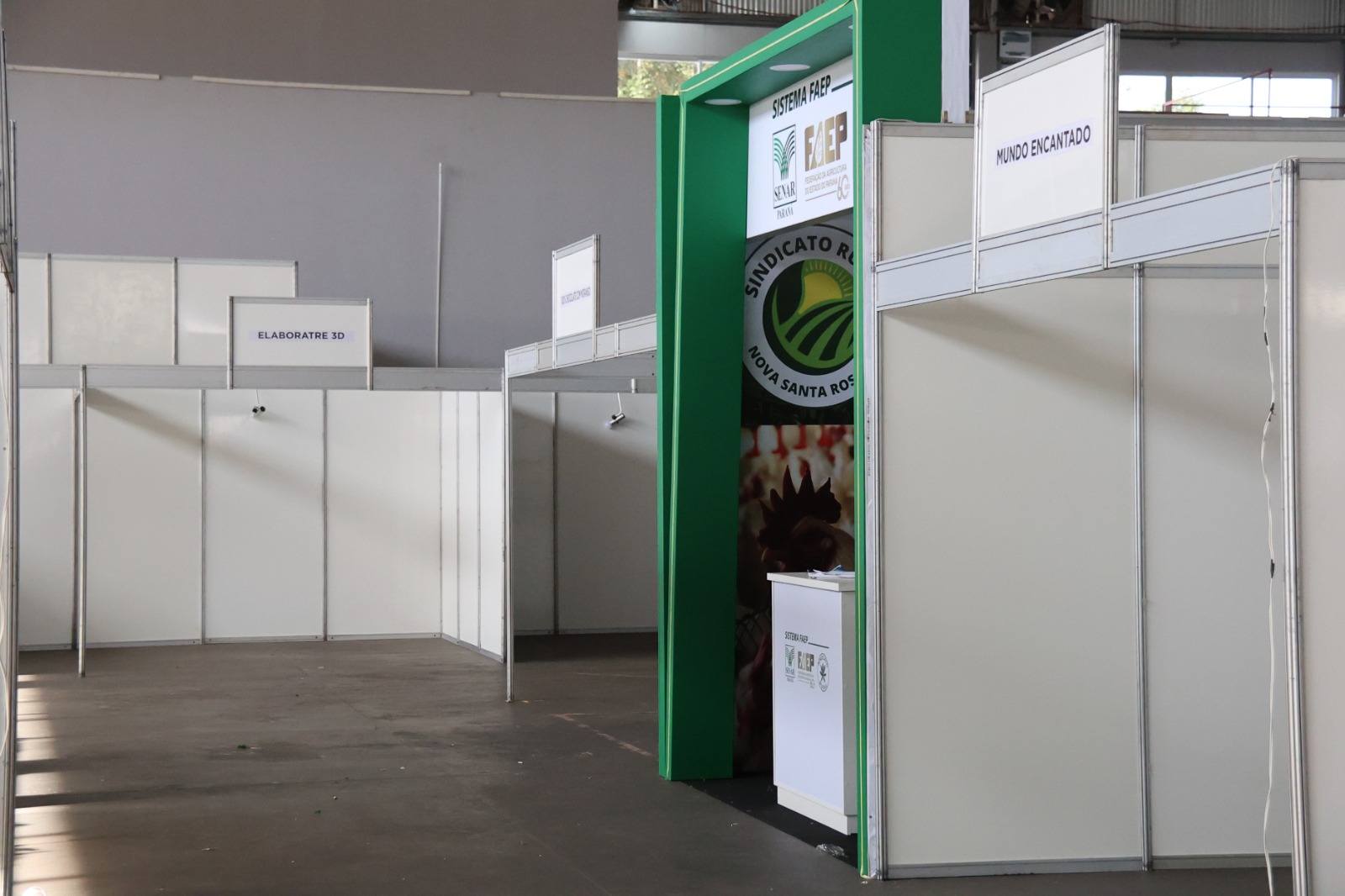 Há três dias da abertura da Expo Rosa 2026, a movimentação no Parque de Exposições Joia do Oeste já é intensa. Nesta segunda-feira (20), os expositores que estarão no Centro de Eventos iniciaram a montagem de seus estandes, assim como os MEIs, que neste ano ocuparão o segundo piso do espaço.