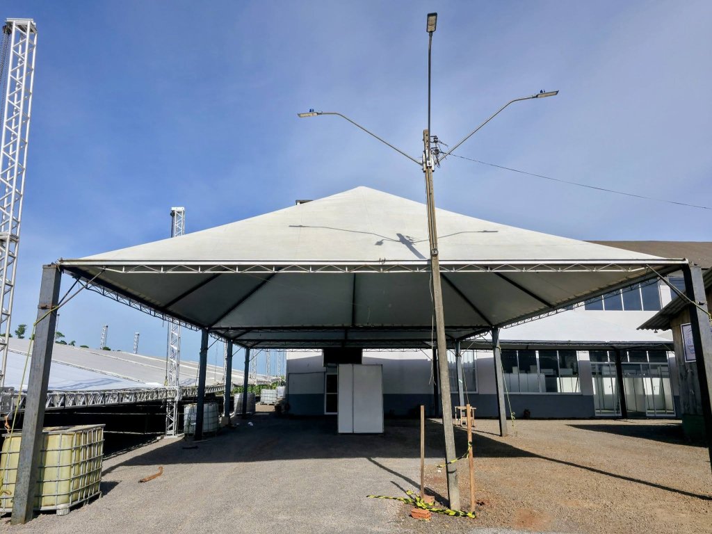 Na área externa, a arena de shows já está praticamente pronta, restando apenas a elevação da estrutura do palco. O local será palco de grandes atrações, como Projeto Sola, Corpo e Alma, Fernando e Sorocaba e Cácio e Marcos — todos com entrada gratuita.