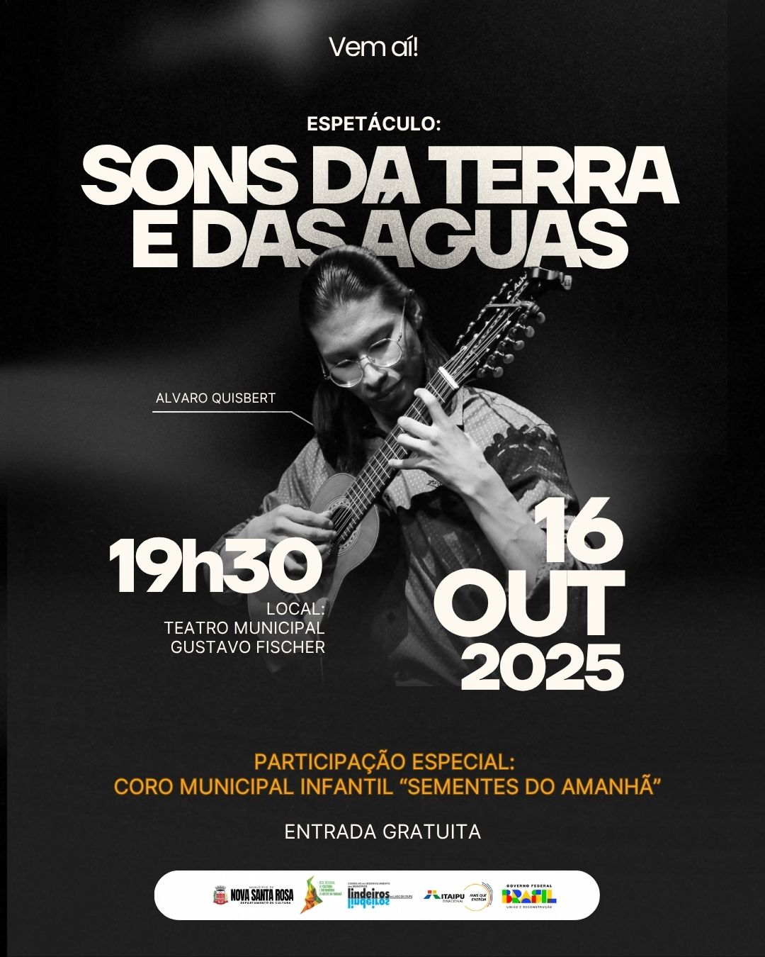 A natureza se traduz em músicas de beleza ímpar no Charango, instrumento andino de cinco pares de cordas que ressoa nas mãos de Álvaro Quisbert. O músico boliviano de projeção internacional , apresenta o espetáculo instrumental Som da Terra e das águas, na próxima quinta-feira, dia 16 de outubro às 19h30 no Teatro Municipal Gustavo Fischer. E para deixar a noite ainda mais especial, teremos a participação super especial do CORO INFANTIL Sementes do Amanhã. Essa ação acontece através da Rede Regional de Cultura e Patrimônio do Oeste, com apoio do Convênio Linha Ecológica, Conselho dos Lindeiros e Itaipu Binacional. ENTRADA GRATUITA