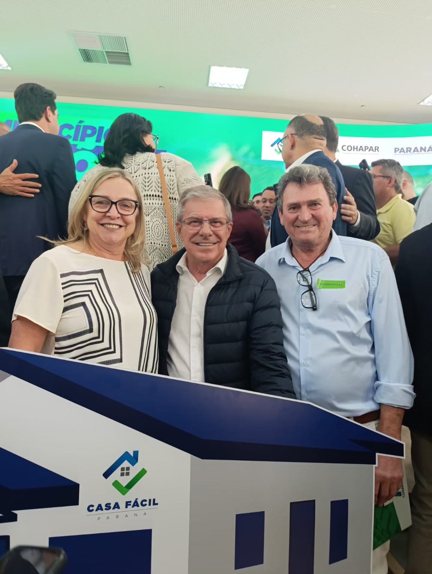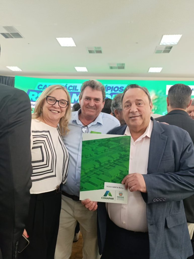 O vice-prefeito de Nova Santa Rosa, Roque Lorenzatto, acompanhado da vereadora Maria Ester Baumann, participou na segunda-feira (10), no Palácio do Iguaçu, em Curitiba, do lançamento da nova modalidade do programa Casa Fácil Paraná, realizado pelo governador Ratinho Junior.