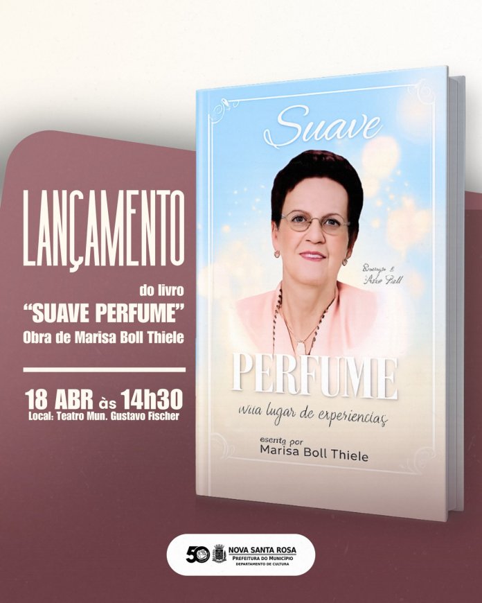 O Teatro Municipal Gustavo Fischer sediará neste sábado (18), o lançamento do livro “Suave Perfume”, de autoria de Marisa Boll Thiele, que retrata a trajetória e o legado de Dona Lídia Boll.