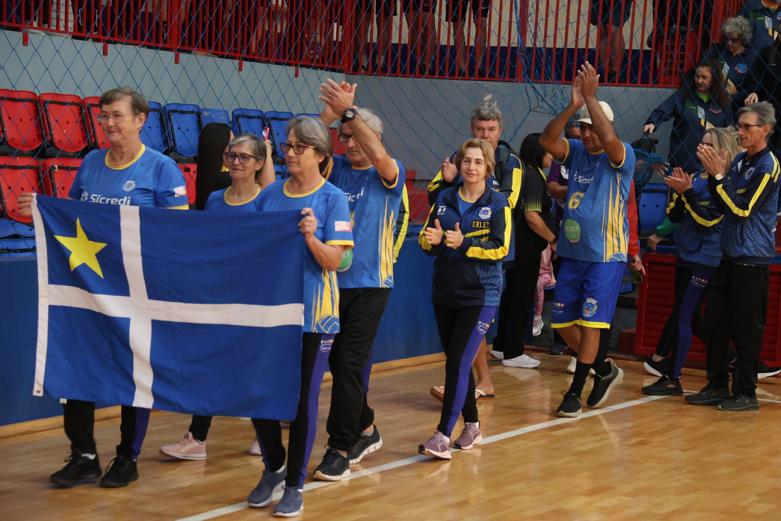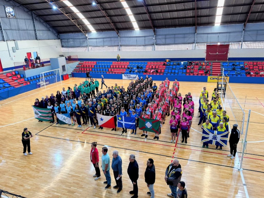 Nova Santa Rosa está sediando, pela primeira vez em sua história, a fase estadual da Superliga Melhor Idade de Voleibol Adaptado do Paraná. O evento iniciou na manhã de hoje e seguirá até amanhã, reunindo 22 equipes de oito municípios do estado, com disputas no Ginásio de Esportes Eurides Priebe e na Quadra B.