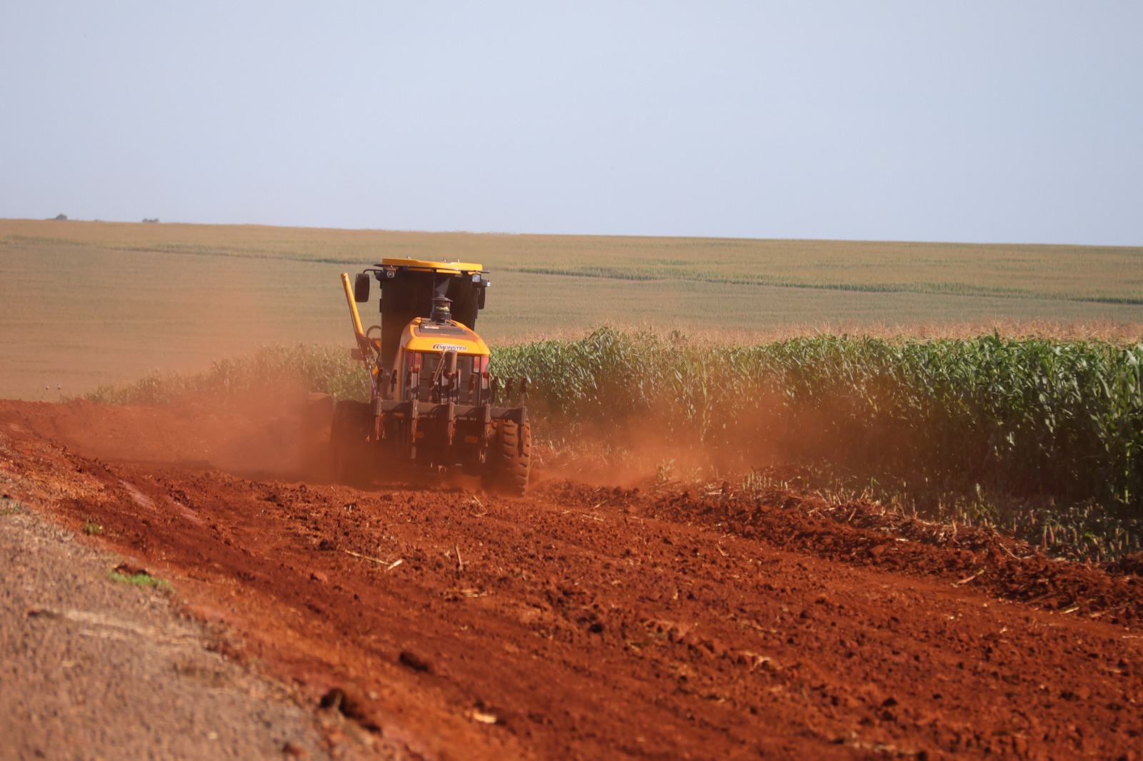 Nesta etapa inicial, a empresa responsável pela execução, a Monster Ltda., de Mercedes, deu início aos serviços de limpeza das laterais da estrada, preparando o trecho para a terraplanagem.