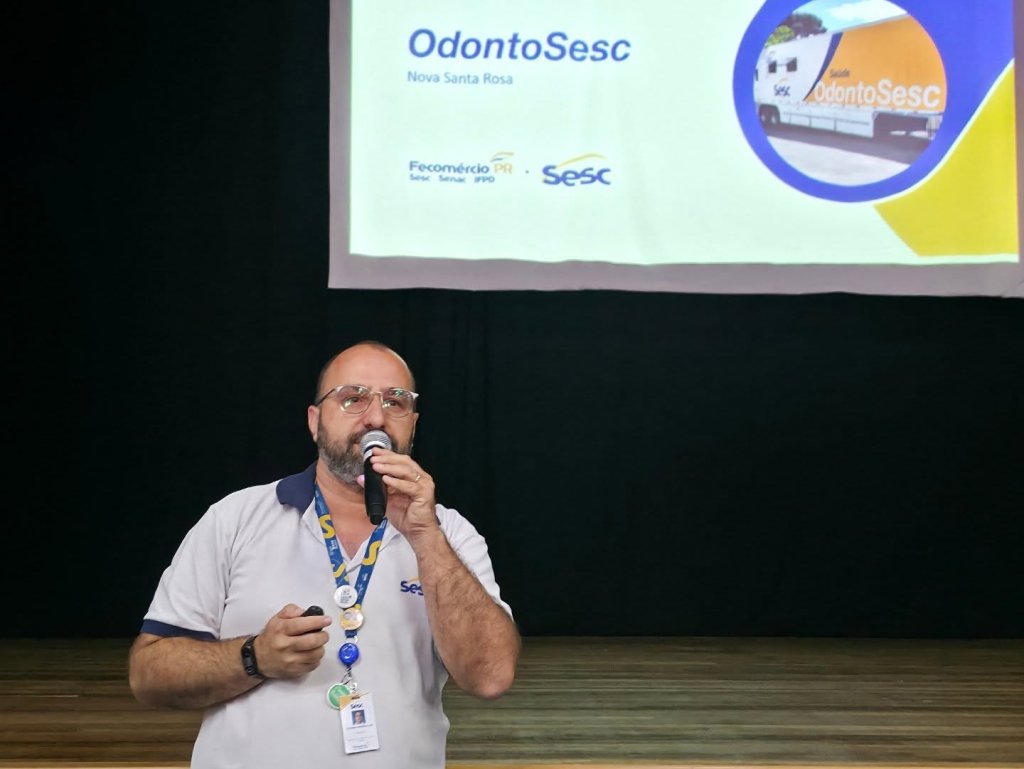 Na tarde deste sábado (21), o Teatro Municipal Gustavo Fischer recebeu uma reunião de apresentação da Unidade Móvel do OdontoSesc em Nova Santa Rosa. O encontro teve como objetivo explicar à comunidade como funcionará o atendimento na carreta e esclarecer dúvidas sobre os serviços que serão oferecidos à população. A reunião contou com a presença dos pacientes selecionados para participar do projeto.