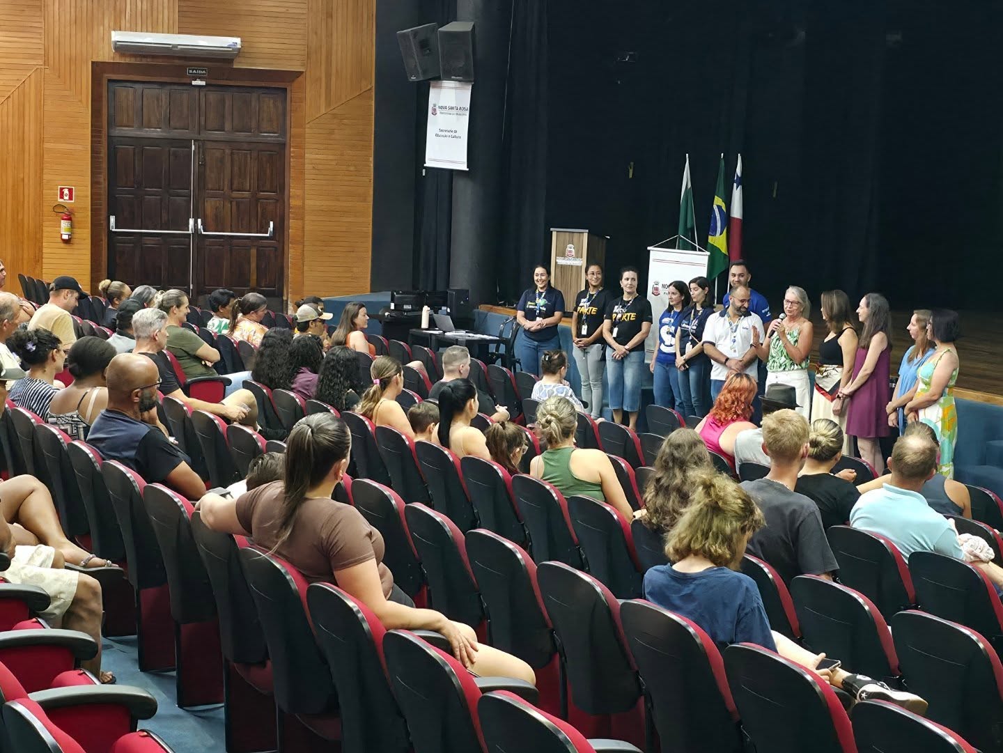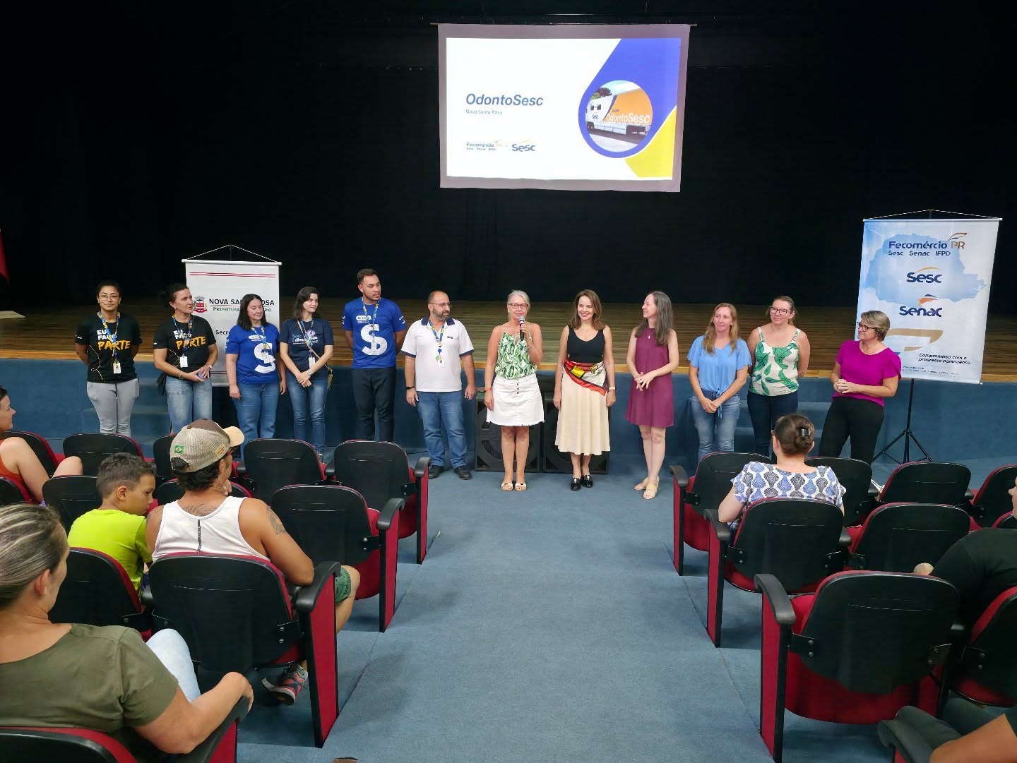 Na tarde deste sábado (21), o Teatro Municipal Gustavo Fischer recebeu uma reunião de apresentação da Unidade Móvel do OdontoSesc em Nova Santa Rosa. O encontro teve como objetivo explicar à comunidade como funcionará o atendimento na carreta e esclarecer dúvidas sobre os serviços que serão oferecidos à população. A reunião contou com a presença dos pacientes selecionados para participar do projeto.
