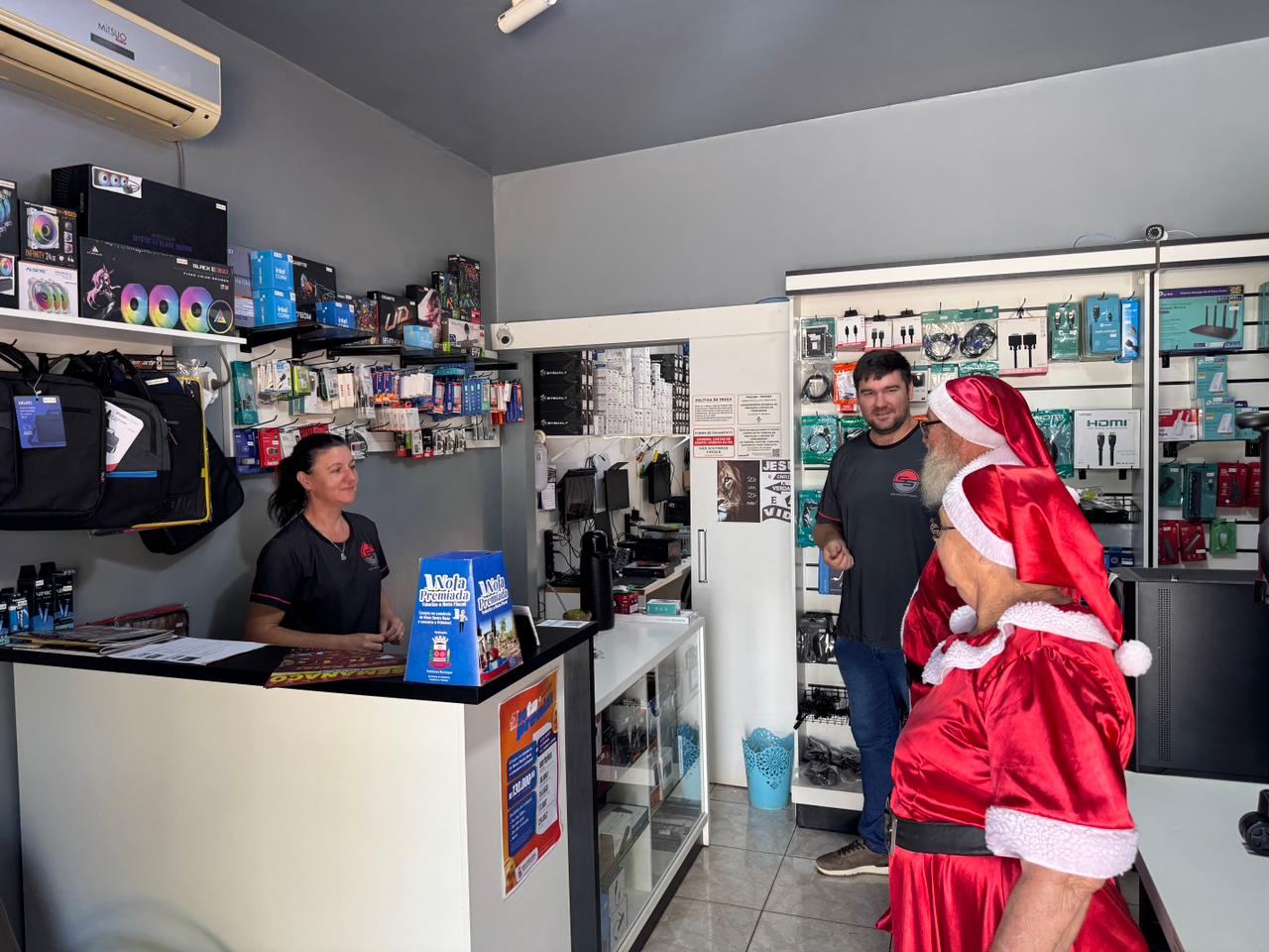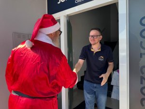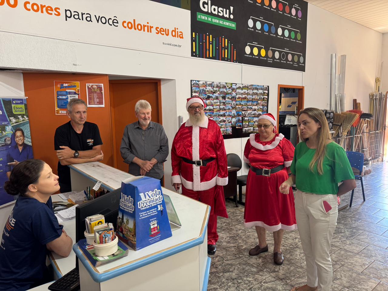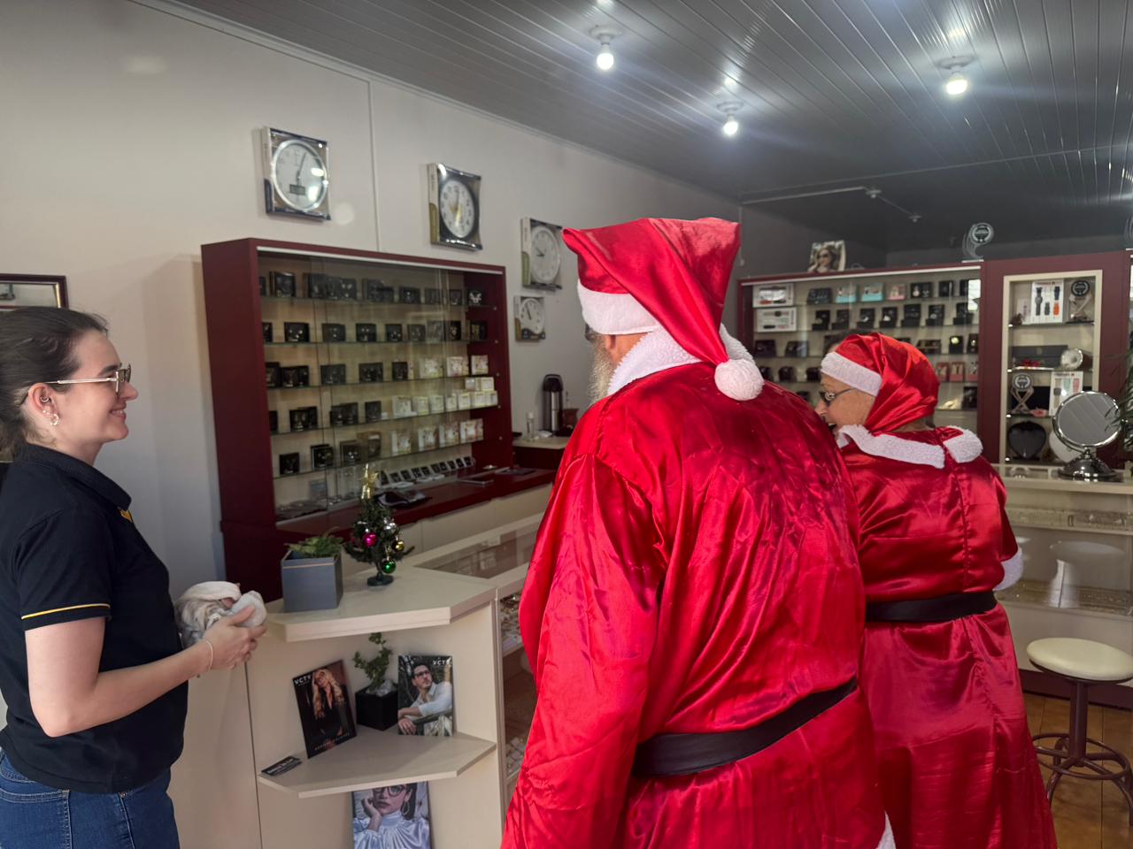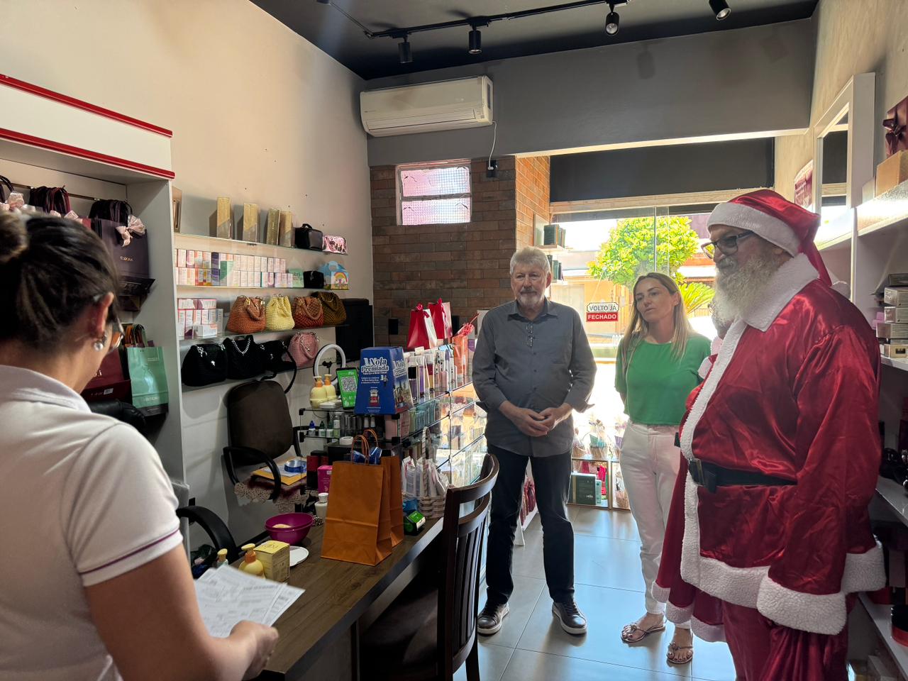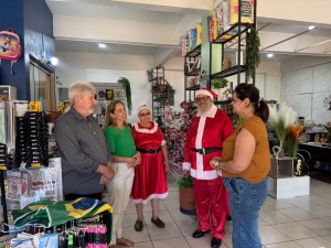 A iniciativa contou com a visita do Casal Noel, que percorreu diversos estabelecimentos, acompanhado da secretária da pasta, Andreia Niedermeyer Loeblain. Em alguns momentos, o prefeito Lari Hitz também participou da ação, reforçando a proximidade da administração municipal com o setor produtivo.