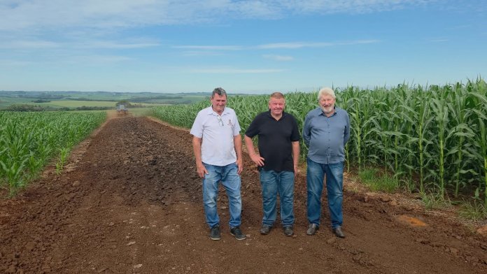 Na manhã desta quarta-feira (25), o prefeito Lari Hitz esteve no local acompanhando os trabalhos, ao lado do vice-prefeito Roque Lorenzatto e do secretário da pasta, Max Benke.