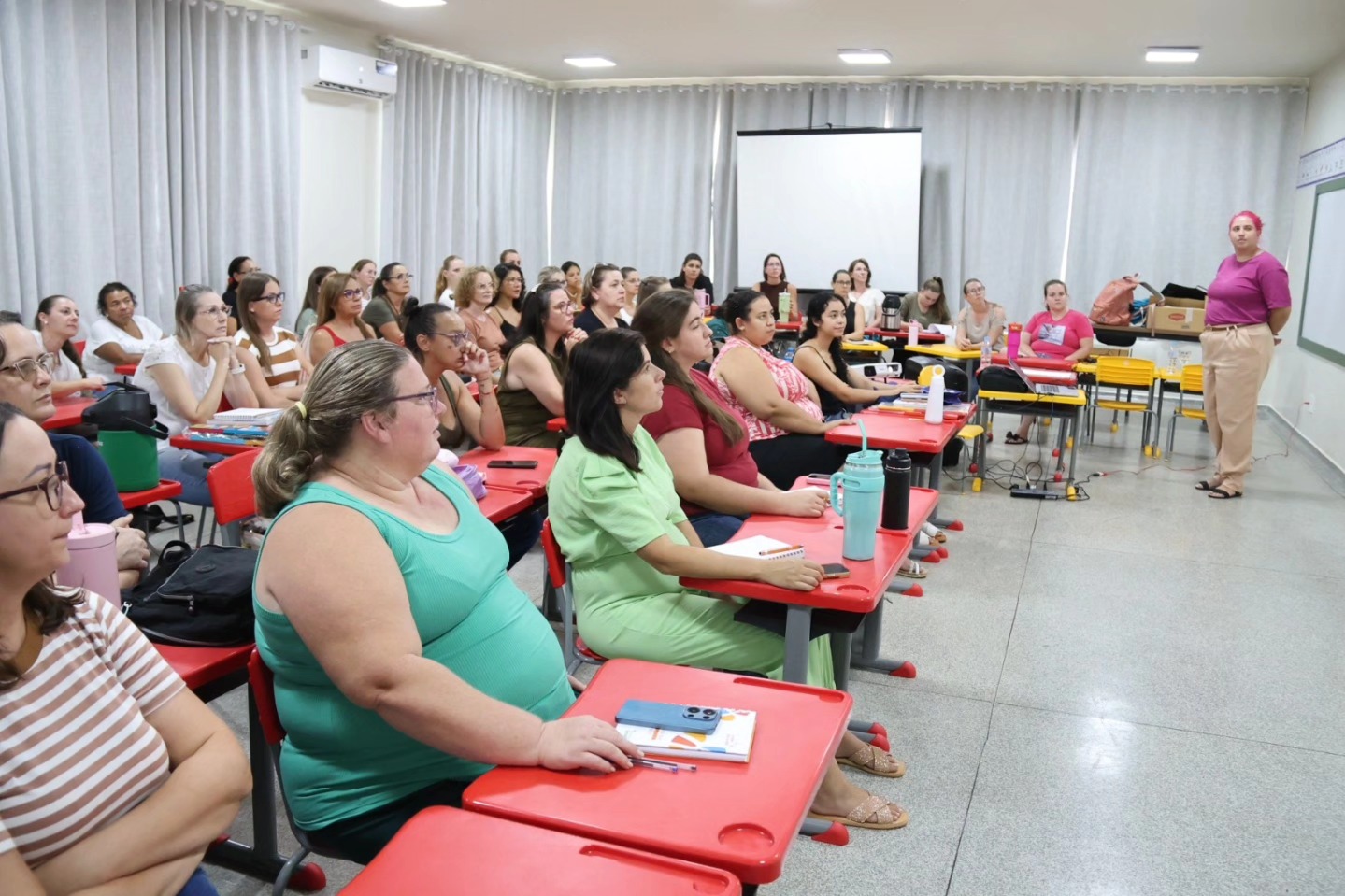 A formação foi conduzida por representantes da Editora FTD Educação e teve como objetivo orientar e preparar os profissionais para a utilização do novo sistema de ensino, que passa a integrar a rede municipal. Durante o encontro, foram apresentados os princípios pedagógicos, os materiais didáticos e as metodologias que compõem o SIM, com foco no desenvolvimento integral das crianças.