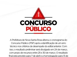 A Prefeitura de Nova Santa Rosa, publicou nesta quinta-feira (08) o edital que torna pública a realização...
