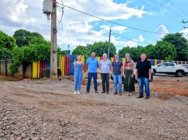 O prefeito Lari Hitz, acompanhado do vice-prefeito Roque Lorenzatto, do secretário de Agricultura, Meio Ambiente e Infraestrutura, Max Benke, e do engenheiro civil Matheus...