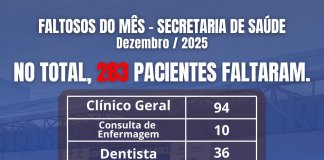 A Secretaria de Saúde de Nova Santa Rosa divulgou o levantamento referente às faltas em consultas e atendimentos agendados durante o mês de dezembro...